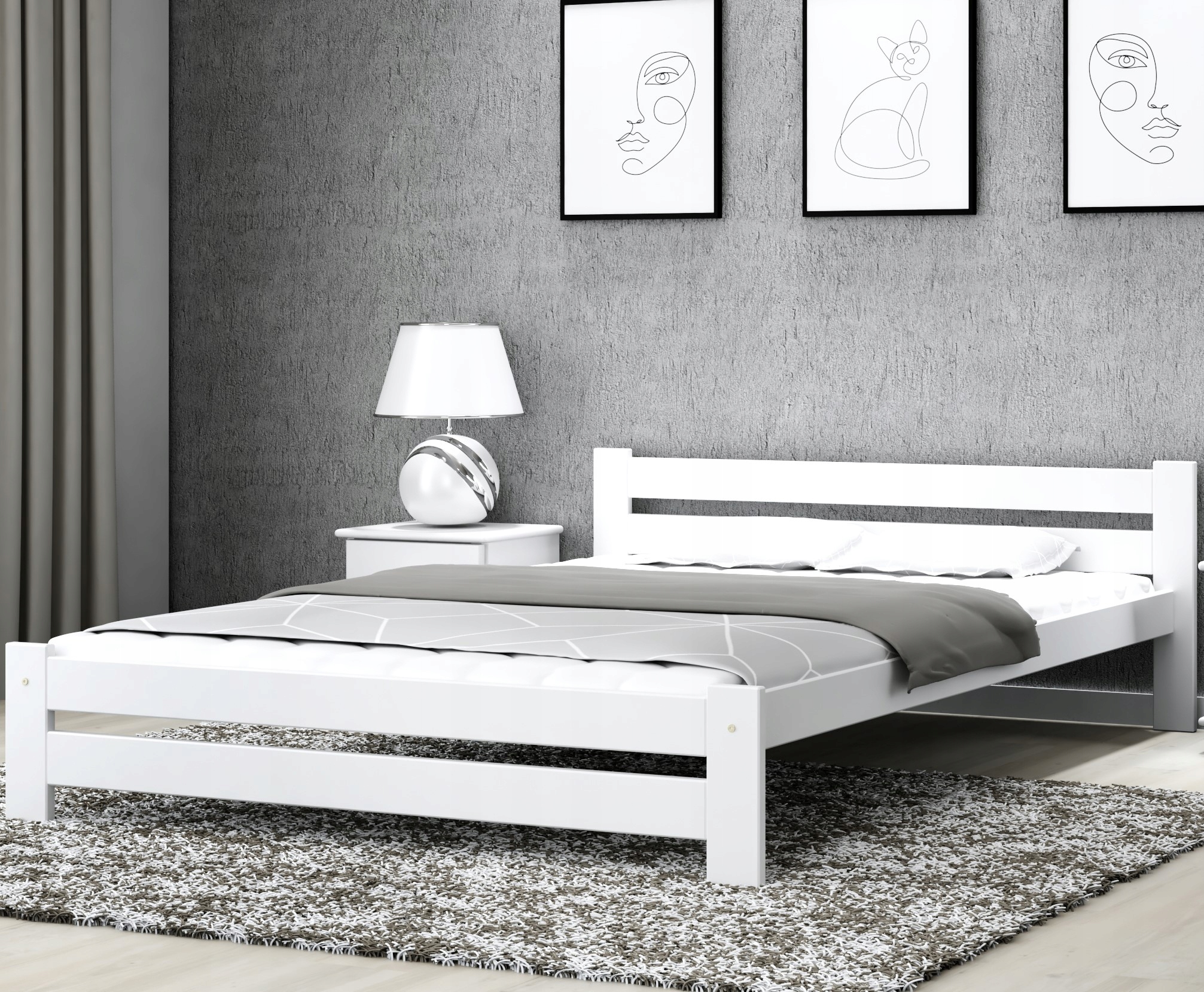 ŁÓŻKO drewniane SOSNOWE Agata 140×200 rama BIAŁE